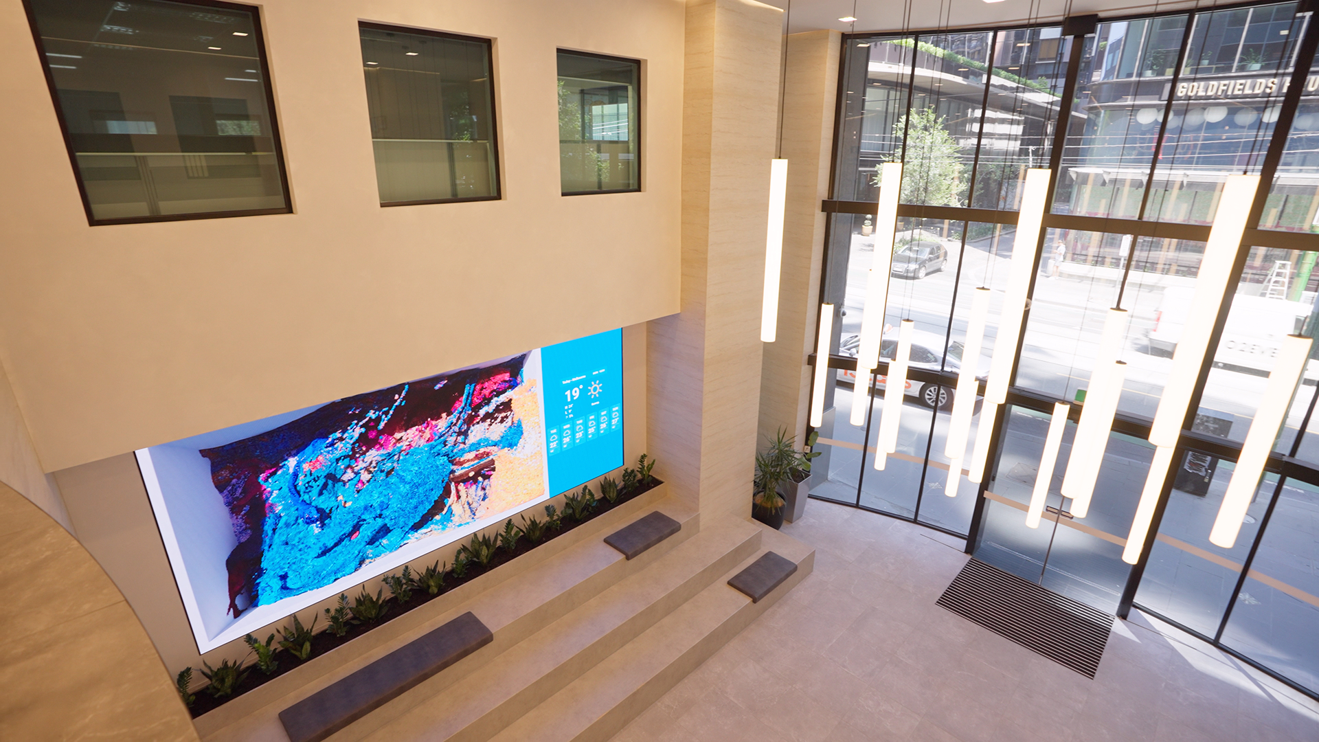 The LED screen has transformed the main entrance into a dynamic digital touchpoint: